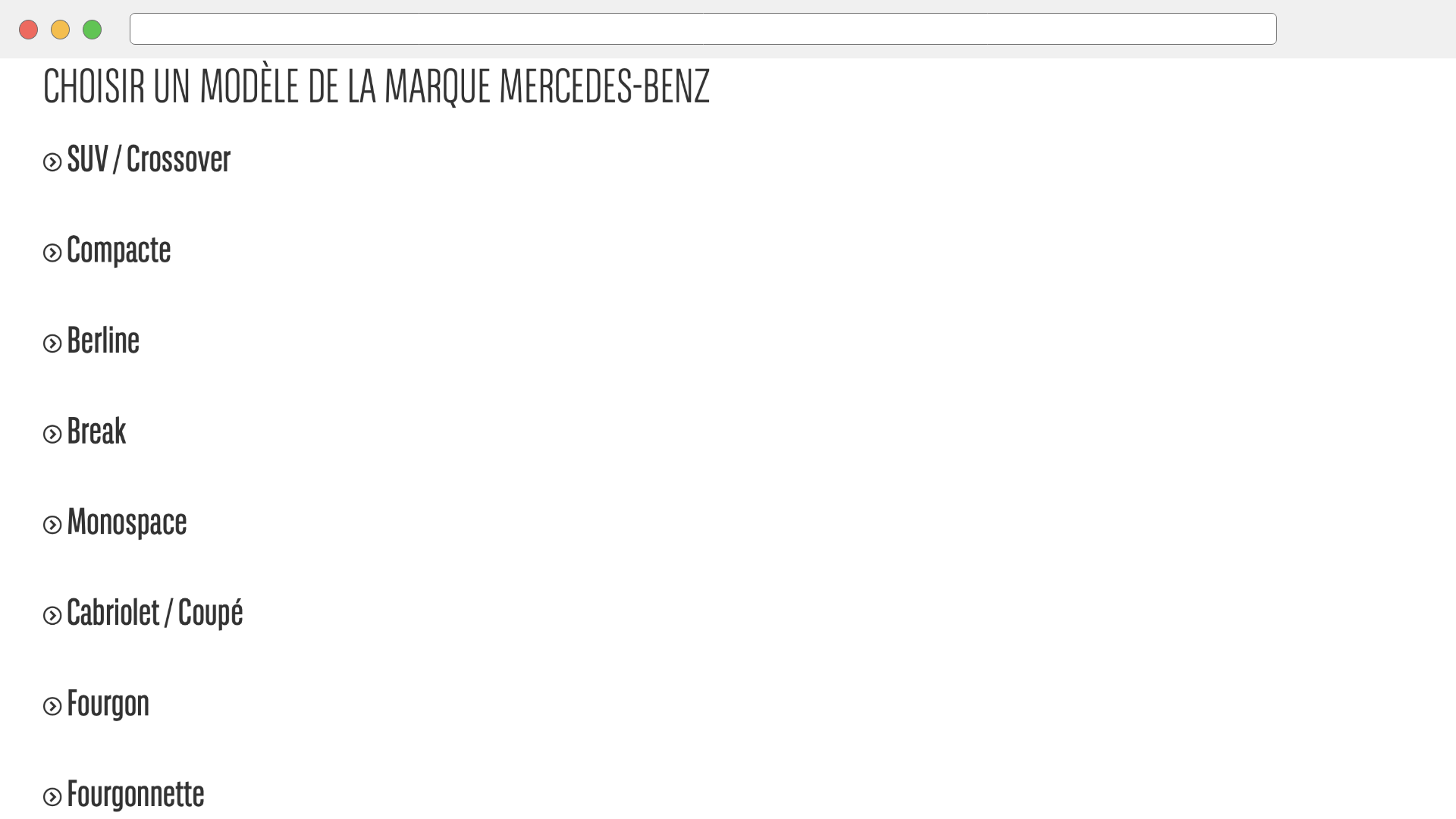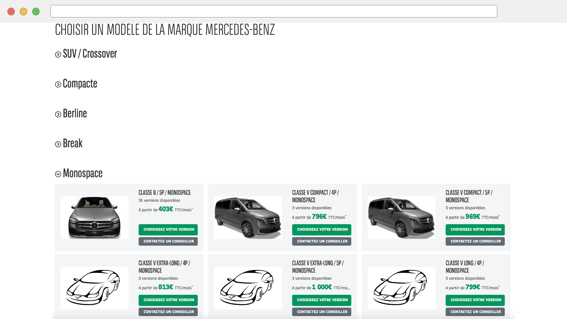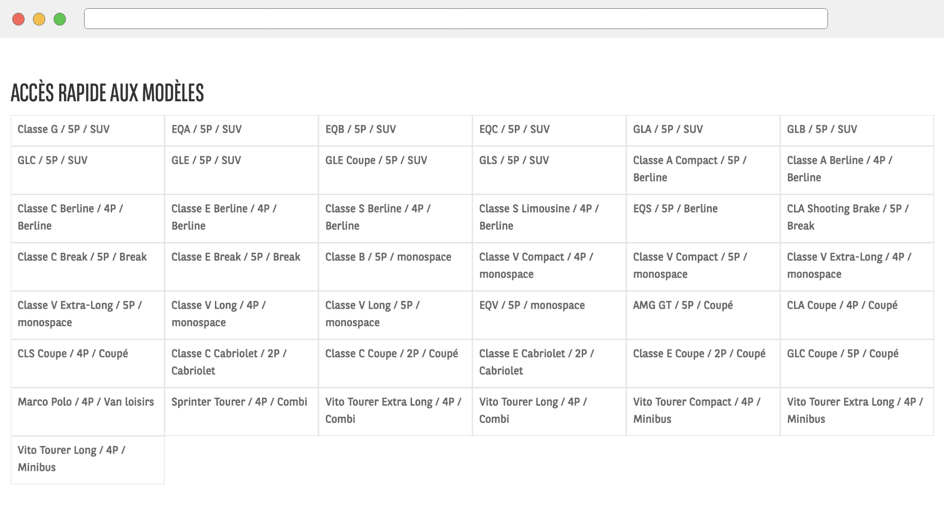 Si l'utilisateur choisit la recherche par marque, alors cela signifie qu'il n'a pas une idée fixe du vehicule qu'il souhaite louer, alors nous lui donnons :