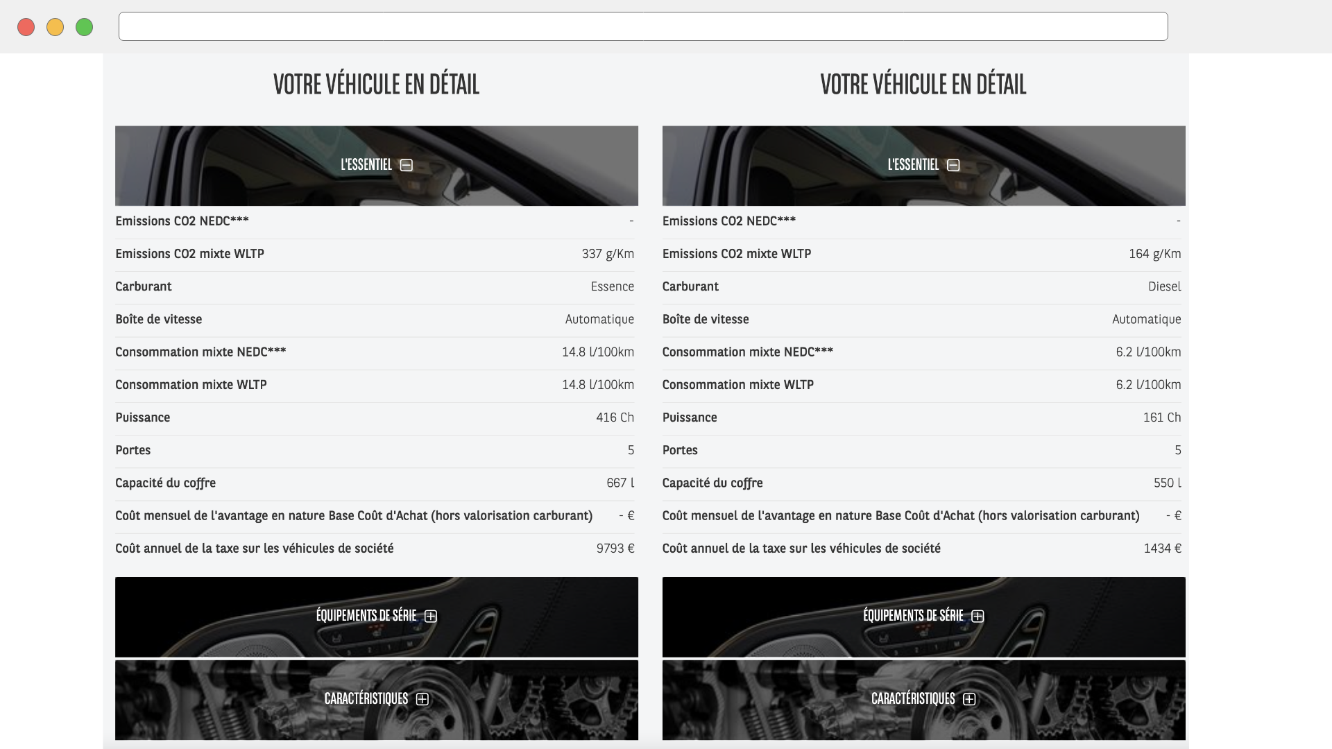 De plus, nous proposons de faire des comparaisons de véhicules :
