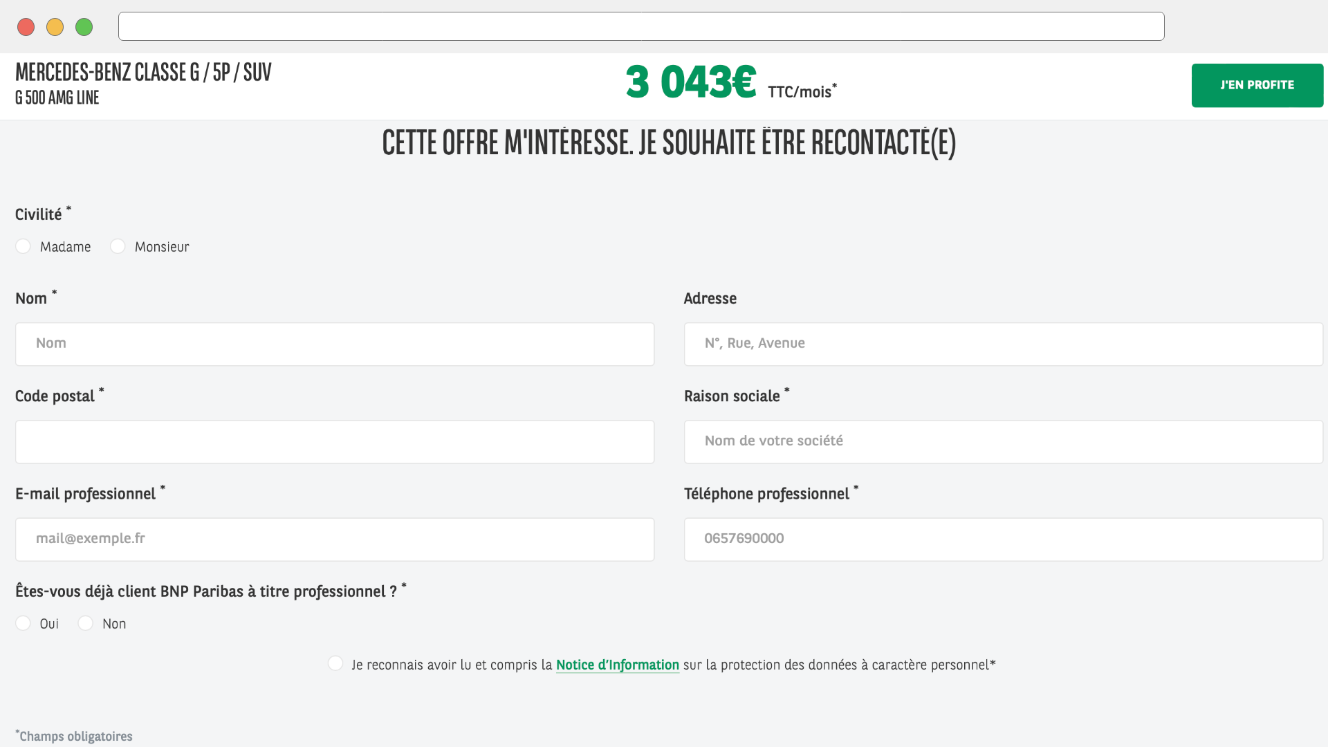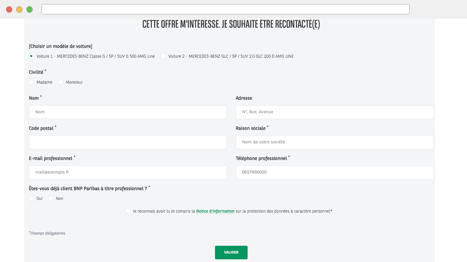 4. Par le formulaire de contact, l'utilisateur pourra faire son choix parmis les deux vehicules et être recontacté par un conseiller