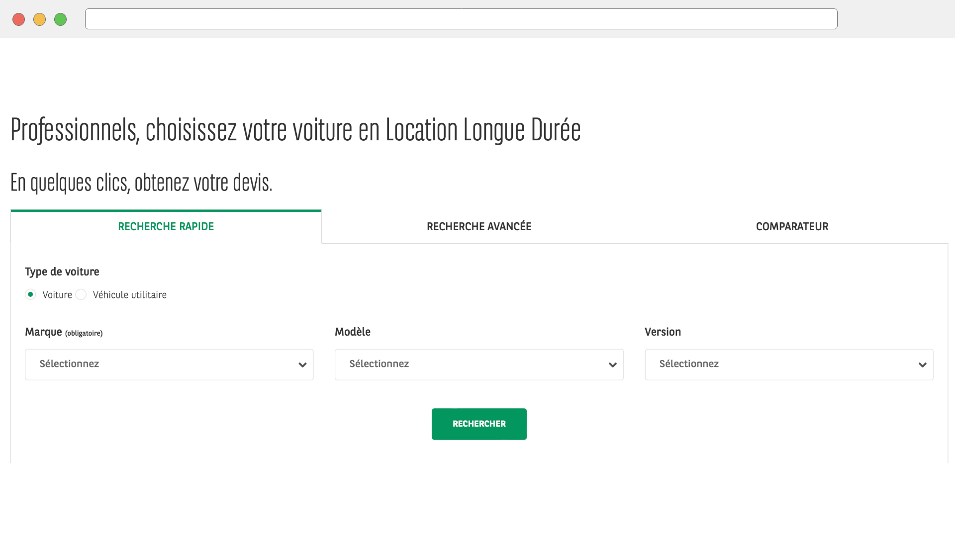 • La création d'interfaces permettant aux utilisateurs d'avoir un devis de location selon la marque, le modèle et la version du véhicule sélectionné
