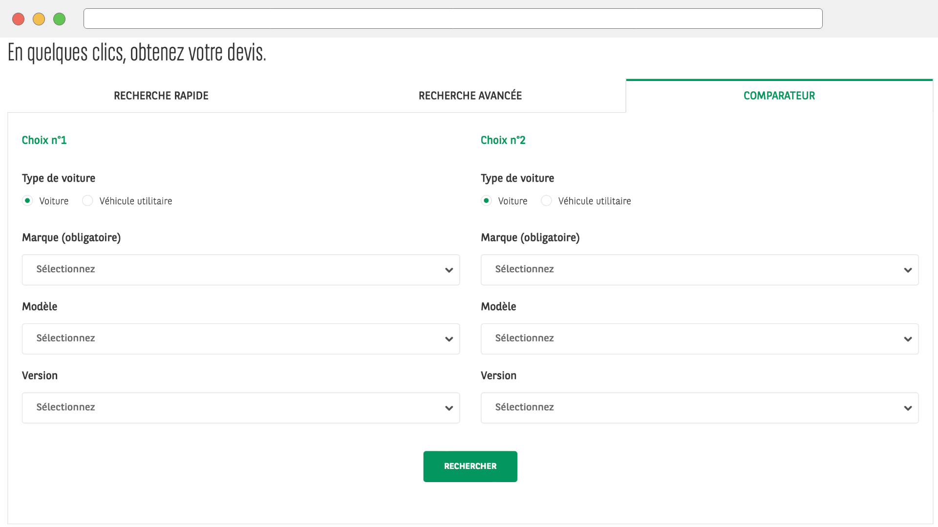 1. L'utilisateur doit choisir le véhicule avec lequel il souhaite faire la comparaison